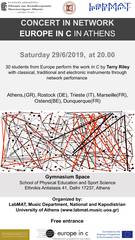 ( Ιταλία, Βέλγιο, Γαλλία, Γερμανία, Ελλάδα) για την εκτέλεση του έργου In C του Μινιμαλιστή Αμερικανού συνθέτη Terry Riley στο πλαίσιο του Ευρωπαϊκού προγράμματος Erasmus+ “ Europe in C”.