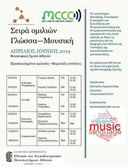 Το εργαστήριο Μουσικής, Γνωσιακών Επιστημών και Κοινότητας, και το εργαστήριο Ψυχογλωσσολογίας και Νευρογλωσσολογίας με χαρά σας προσκαλούν στην έναρξη του κύκλου ομιλιών για τη γλώσσα και τη μουσική, ανοικτού για όλους τους ενδιαφερόμενους.